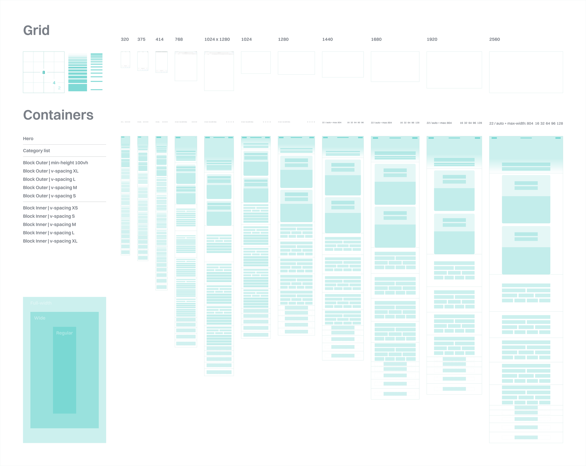 - Standard typographic scale values and 8px digital grid systems which dictate the output and its optimal construction methods